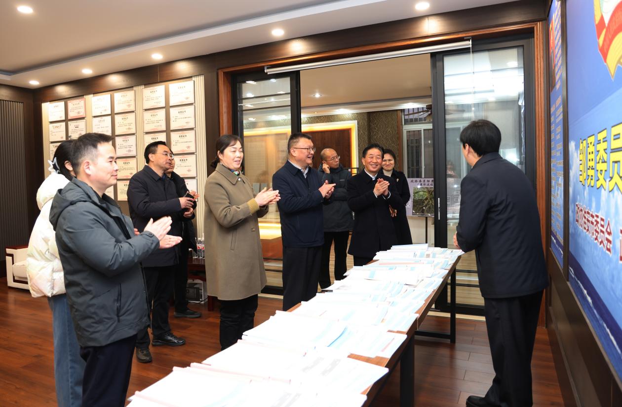 韩文军一行首先听取了邹勇委员关于高质量建设政协邹勇委员工作室的情况汇报,查看了有关资料。 韩文军对邹勇委员具有较强的履职责任感以及委员履职成果给予了充分肯定。