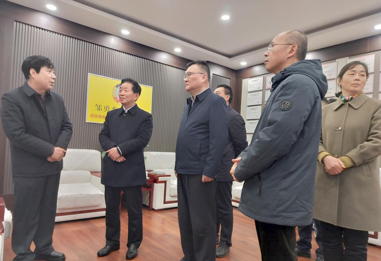 近日,淮安市政协副主席、民建淮安市委会主委韩文军率市政协农业农村委部分市政协委员,赴金湖邹勇委员工作室视察指导工作,市政协农业农村委主任徐洪云、金湖县政协主席何如进等参加活动。