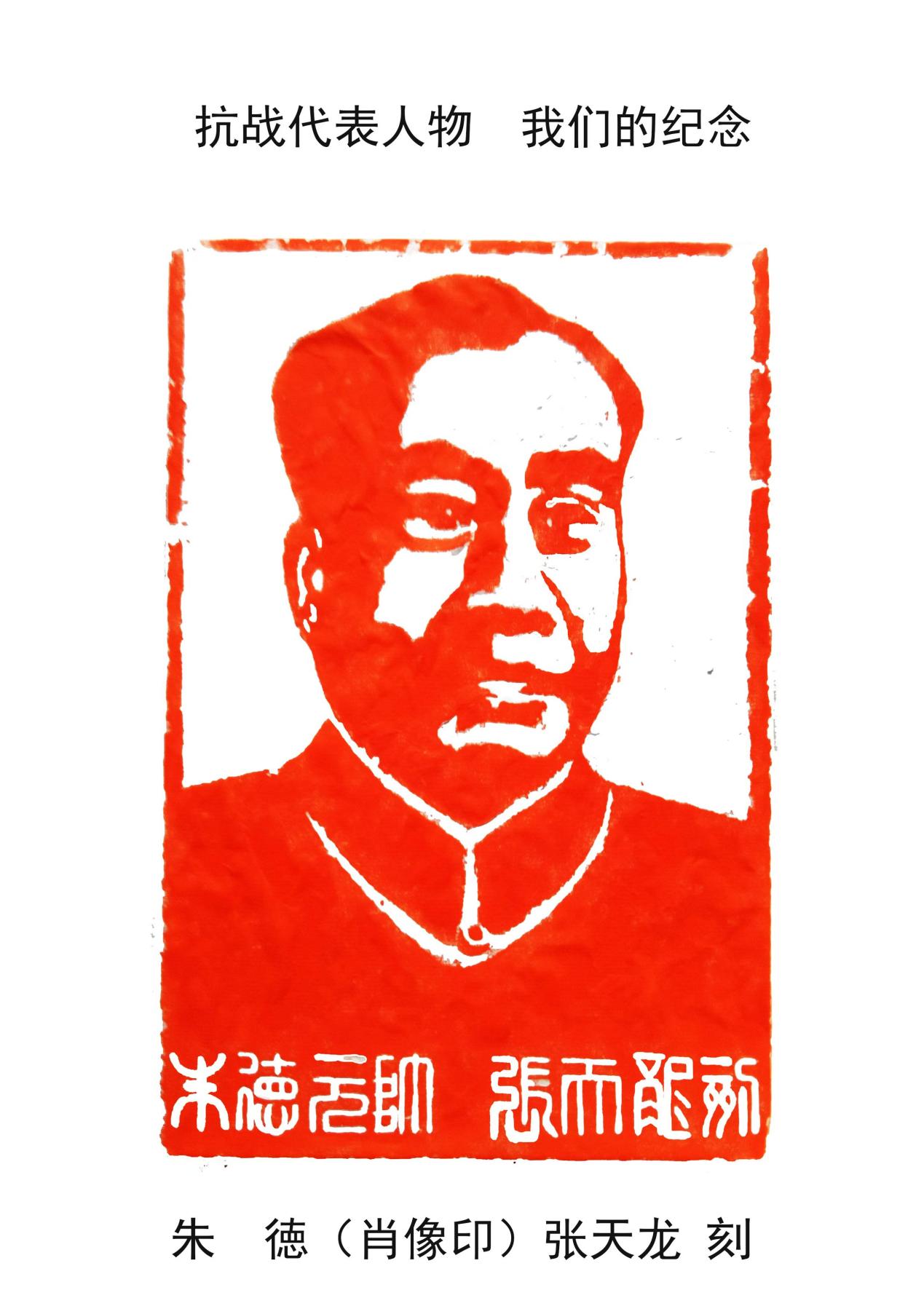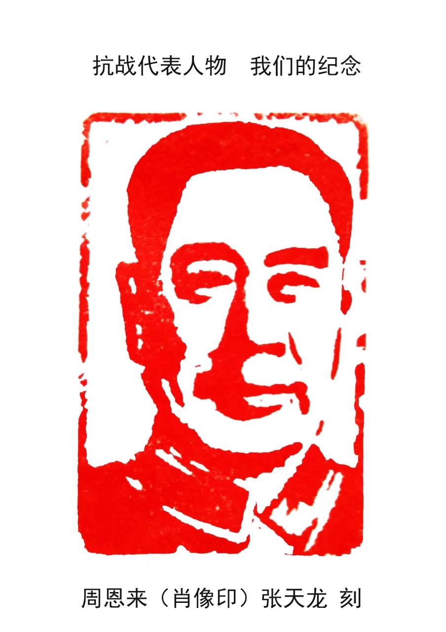 在中国人民抗日战争暨世界反法西斯战争胜利八十周年大会即将召开之际,淮安市民建会员,著名刻石肖像印篆刻家张天龙先生创作《抗战代表人物――我们的纪念》肖像印一组。张天龙用刻石肖像印的形式,纪念带领中国人民抗击日本帝国主义,迫使日本无条件投降,中国人民取得抗日战争伟大胜利的代表人物。回望历史,让更多人记住他们作出的历史贡献,铭记历史,居安思危,反对战争,珍惜当下的和平时代。爱党爱国,努力工作,富国强民,让日本和法西斯战争不再发生,为中华民族伟大复兴做出自己的一份贡献。(机关四支部)