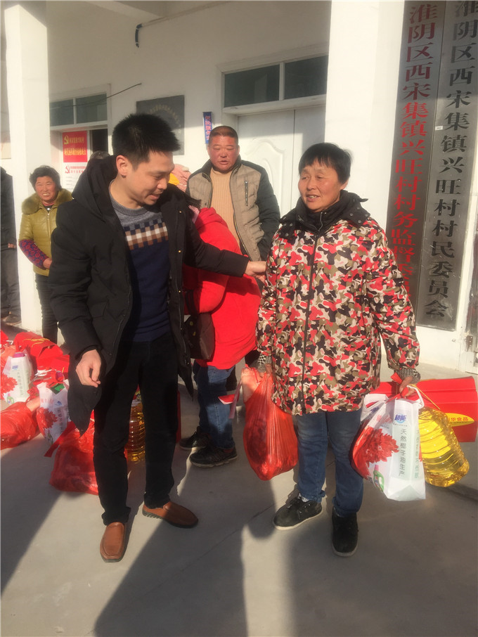 寒冬腊月,暖意融融。在中华民族的传统节日春节即将到来之际,2月12日下午,民建淮阴区基层委员会组织骨干会员赴淮阴区西宋集镇兴旺村慰问该村10户困难家庭,为他们送去了猪肉、食用油、坚果大礼包、洗衣液等慰问品。