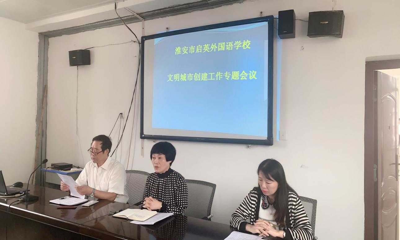 淮安市新一轮全国文明城市创建集结号已吹响,全市上下积极响应市委、市政府号召,强化责任担当,凝聚强大合力,迅速掀起新一轮文明城市创建热潮。 2020年9月17日上午,启英外国语学校在一号楼四楼会议室召开了文明城市创建专题会议。特邀民建清江浦区一支部会员们共同参加本次会议。校长李菡针围绕“共建文明城市,共享美好生活’”主题进行了讲话,德育处贾海才主任对创建文明城市工作具体任务进行分析讲解,并进行了明确的分工。一支部副主委焦凌云对学校文明城市创建工作提出建设性建议,强调了以务实之举投身文明城市创建活动的重要性,就学校如何推进校园环境管理、秩序管理、督查考核“三个精细化”方面提出具体意见,校方表示感谢并表示对相关建议将继续细化落实,为全市创建全国文明城市添绿增彩”。