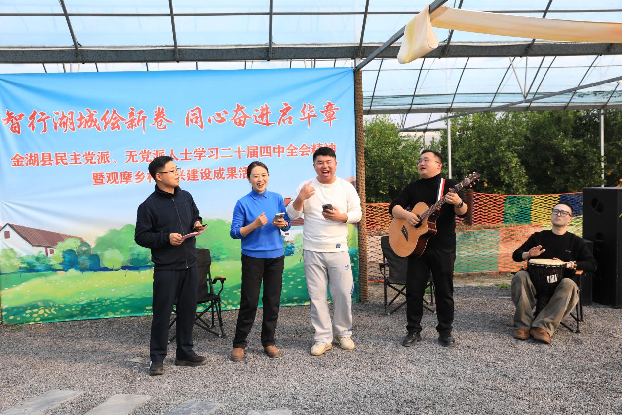 在乡村振兴建设成果观摩环节中,整洁有序的乡村街巷、蓬勃发展的富民产业、宜居宜业的和美图景,让民建金湖支部成员深切感受到乡村振兴战略在金湖的生动实践,也为参政议政积累了鲜活素材。会员们纷纷表示,将聚焦农业农村现代化重点任务,充分发挥民建联系经济界的优势,为培育农业新质生产力、推动城乡融合发展建言献策。随后在文艺汇演阶段,支部会员精心准备的节目精彩亮相,以喜闻乐见的形式展现二十届四中全会精神的丰富内涵,抒发对乡村振兴成果的喜悦之情和同心奋进的坚定决心,赢得现场阵阵掌声。